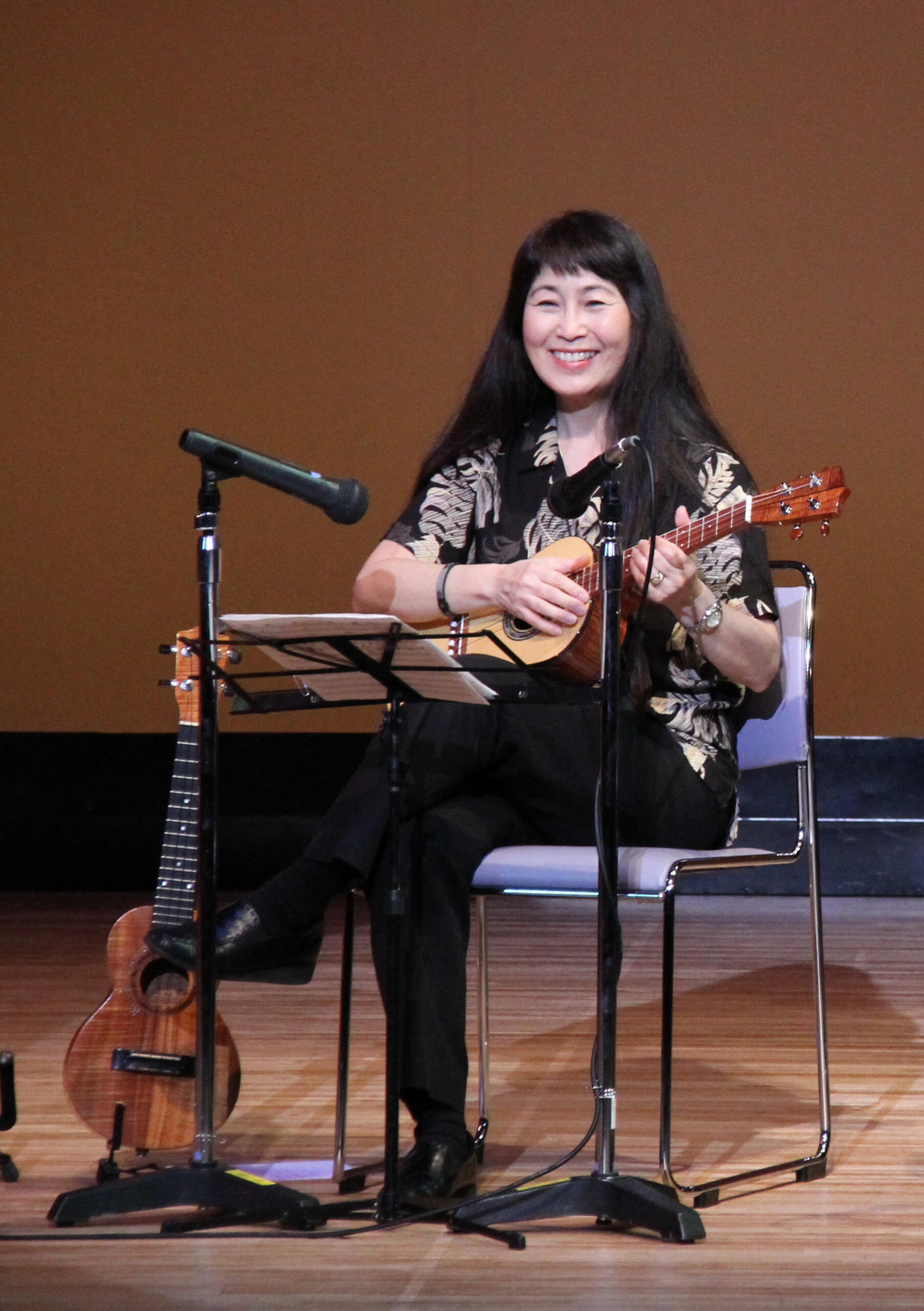 Kuʻulei Mamoです。私は教員免許(幼稚園から12年生)とプロのミュージシャン(AFM Local 677)の資格を持っています。ウクレレだけでなく、英語を教えることにも情熱を注いでいます。ハワイで生まれ育った私は、父がウクレレの先生で、楽器を持てるようになるとすぐに弾き方を教えてくれたので、ウクレレは初めて習う楽器でした。幼少期にはドラムも習い、さまざまなロックバンドで演奏したほか、中学・高校ではバンドのパーカッショニストとして活躍し、ハワイ大学にパーカッショニストとして入学、音楽教育学を専攻しました。その後、ルーズベルト大学「シカゴ、イリノイ州」に編入し、音楽教育/特別教育集中の学位で学部課程を修了しました。